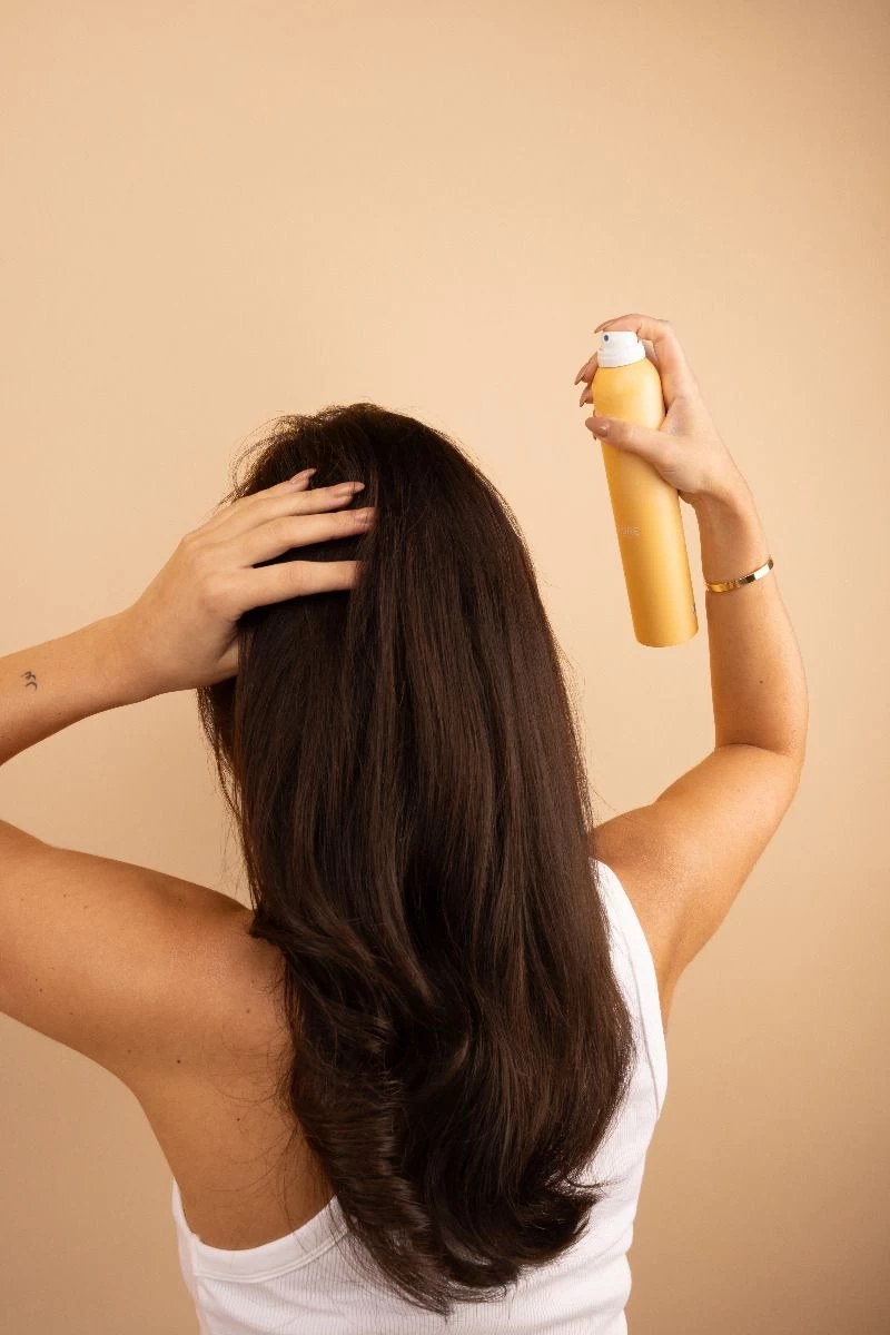 Spray Elleure Modeler Textuur Droogshampoo bij de haaraanzet, voor extra body, volume en frisheid. Voor meer textuur en volume spray je de Droogshampoo over de lengtes van het haar.