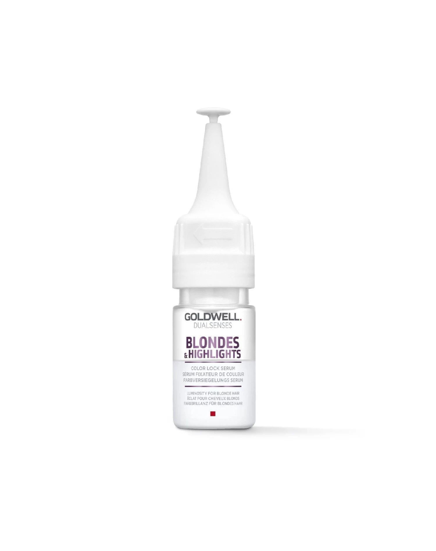 Het DS Blondes&Highlights Color Lock Serum van Goldwell is ideaal voor gebruik op blond haar en haar met highlights. Dit voedende serum zorgt ervoor dat de kleur in het haar langer behouden blijft. Tevens maakt het de kleur intensiever en biedt het een herstellende werking. Ideaal voor gebruik op normaal tot fijn gekleurd haar. Het serum beperkt het vervagen van de kleur tot een minimum en geeft het haar een gezonde en glanzende look.