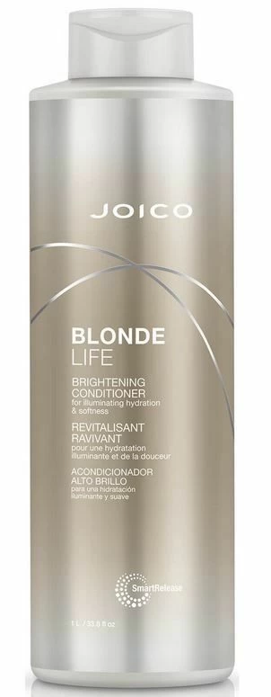 De Joico Blonde Life Brightening Conditioner 1000ml is een intens voedende conditioner. De conditioner heeft de lichtheid van een lotion en de kracht van een serum. De Bio-Advanced Peptide Complex hersteld de beschadigde punten, het natuurlijke aminozuur wordt aangevuld. De Tamanu- en Monoï olie hydrateert het haar en zorgt ervoor dat het haar anti–pluis word. Na gebruik ziet het haar er weer glanzend uit.