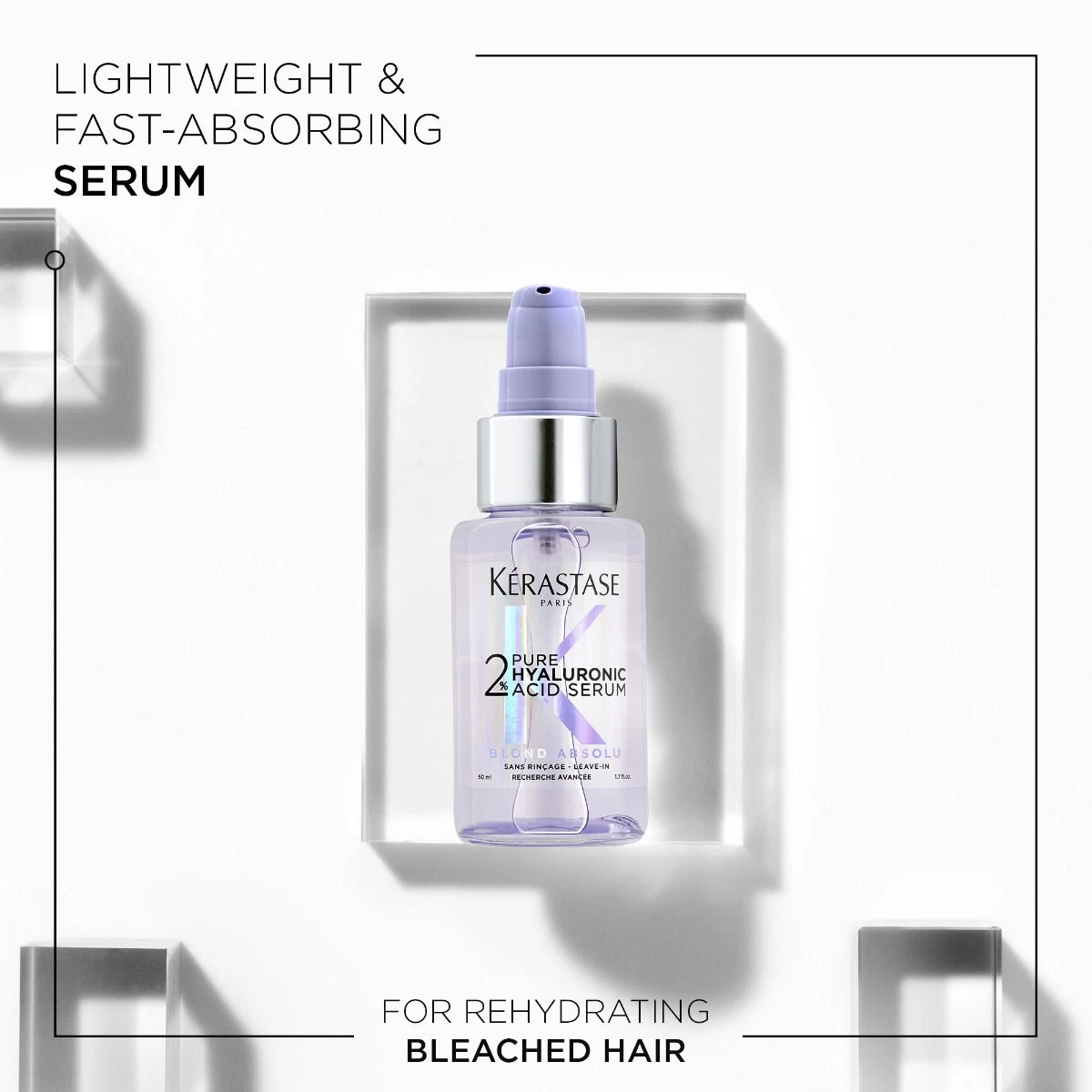 Kies voor het geheim van sterker blond haar met Kérastase. Kérastase Blond Absolu 2% Pure Hyaluronic Acid Serum is parabeenvrij en siliconenvrij, en het wordt geleverd in een recyclebare flacon gemaakt van 20% gerecycled glas.