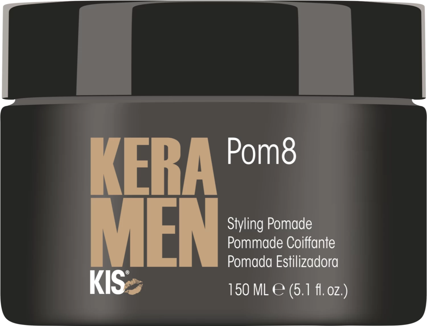 De Pom8 Pommade van KIS geeft je haar een flexibele fixatie en een lichte glans. Je bereikt met deze paste de meest stoere looks maar ook een verzorgde look is gemakkelijk te creëren. De KeraMen Pom8 is na het aanbrengen gemakkelijk doorkambaar, het definieert je haar in elk gewenst model en geeft het daarbij een stevige fixatie en een mooie glans. Deze pommade beschikt over een hoge concentratie vetiverolie, deze olie komt uit een grasplant met een zeer populaire geur.