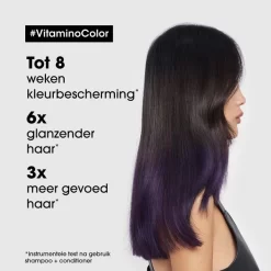 Dankzij de professionele formule, verrijkt met Resveratrol, een krachtige antioxidant, biedt L’Oréal Serie Expert Vitamino Color Shampoo een optimale bescherming tegen vervaging van de kleur. De haarkleur blijft langer behouden, terwijl het haar er helderder uitziet en meer glans heeft.